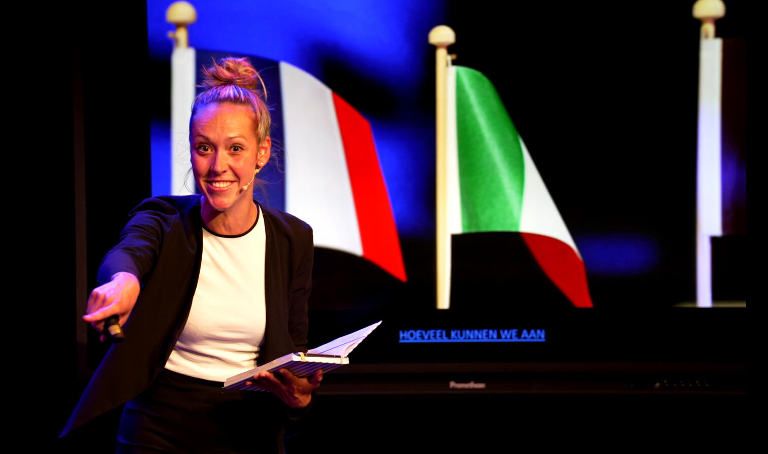 BESCHRIJVING VOORSTELLING:"Gedreven door haar idealen en gemengde roots ging Djûke Stammeshaus in 2017 aan de slag bij het Ministerie van Buitenlandse Zaken en de Europese Unie, eerst op het dossier migratie en later als afgevaardigde op Oekraïne, Rusland en Oost-Europa. Gaandeweg raakte ze verstrikt in de politieke leeuwenkuil van Brussel.Bepakt met een zwarte kokerrok, dagboek en ‘musicalknop’ als tegengif voor de bureaucratische rompslomp, geeft Djûke een inkijkje in de Brusselse black box. Want hoe behoud je je waarden en ambities in een wereld waar mensen een cijfertje worden, met deadlines en memo’s als prioriteit nummer 1? Met anekdotes, interactie, liedjes en een flinke dosis humor neemt ze het publiek mee langs haar werkervaringen van Brussel tot Kamp Moria.Hoeveel Kunnen We Aan is een zoektocht naar zingeving als radertje in een grote organisatie. Djûke duikt in de tegenstrijdige gedachten en emoties over migratie: van compassie tot afwijzing en alles daartussenin. Deze muzikale solovoorstelling toont de rauwe randjes van de actualiteit, en hoe elk mens vol gelaagdheid zit."