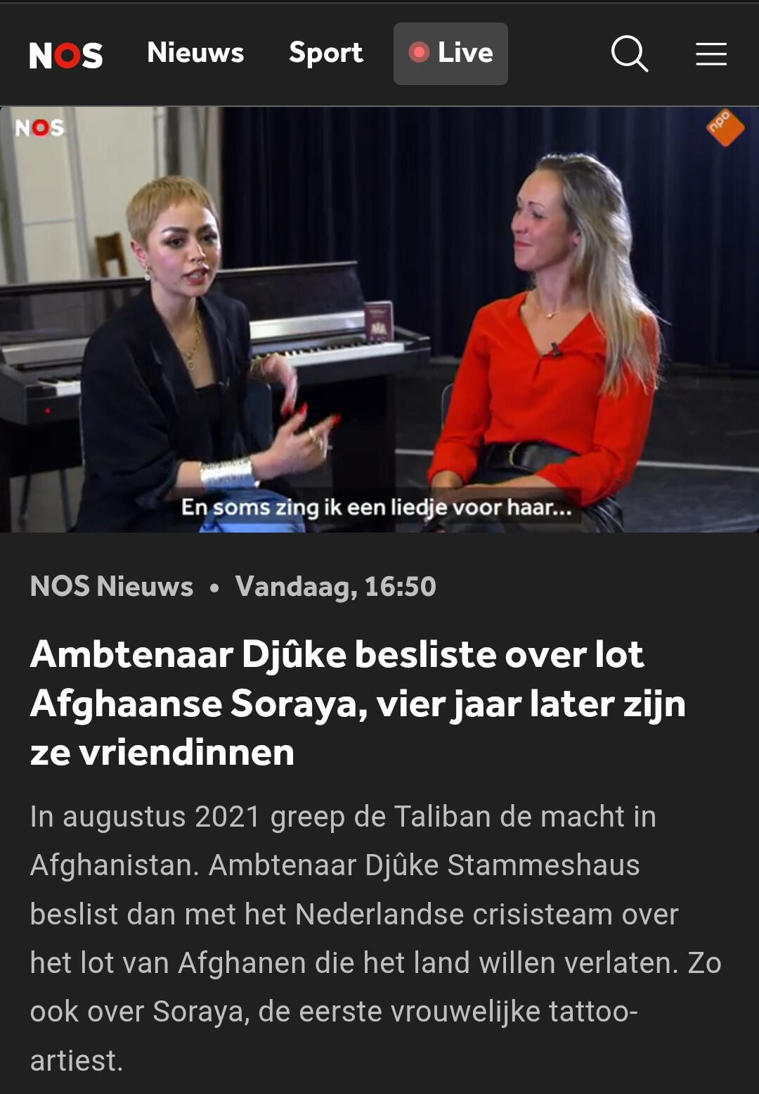 Ook de NOS maakte een mooi fragment hierover. Want de musical is geïnspireerd op hoe de Afghaanse Soraya en ik elkaar ontmoetten. Zie hier het videofragment.