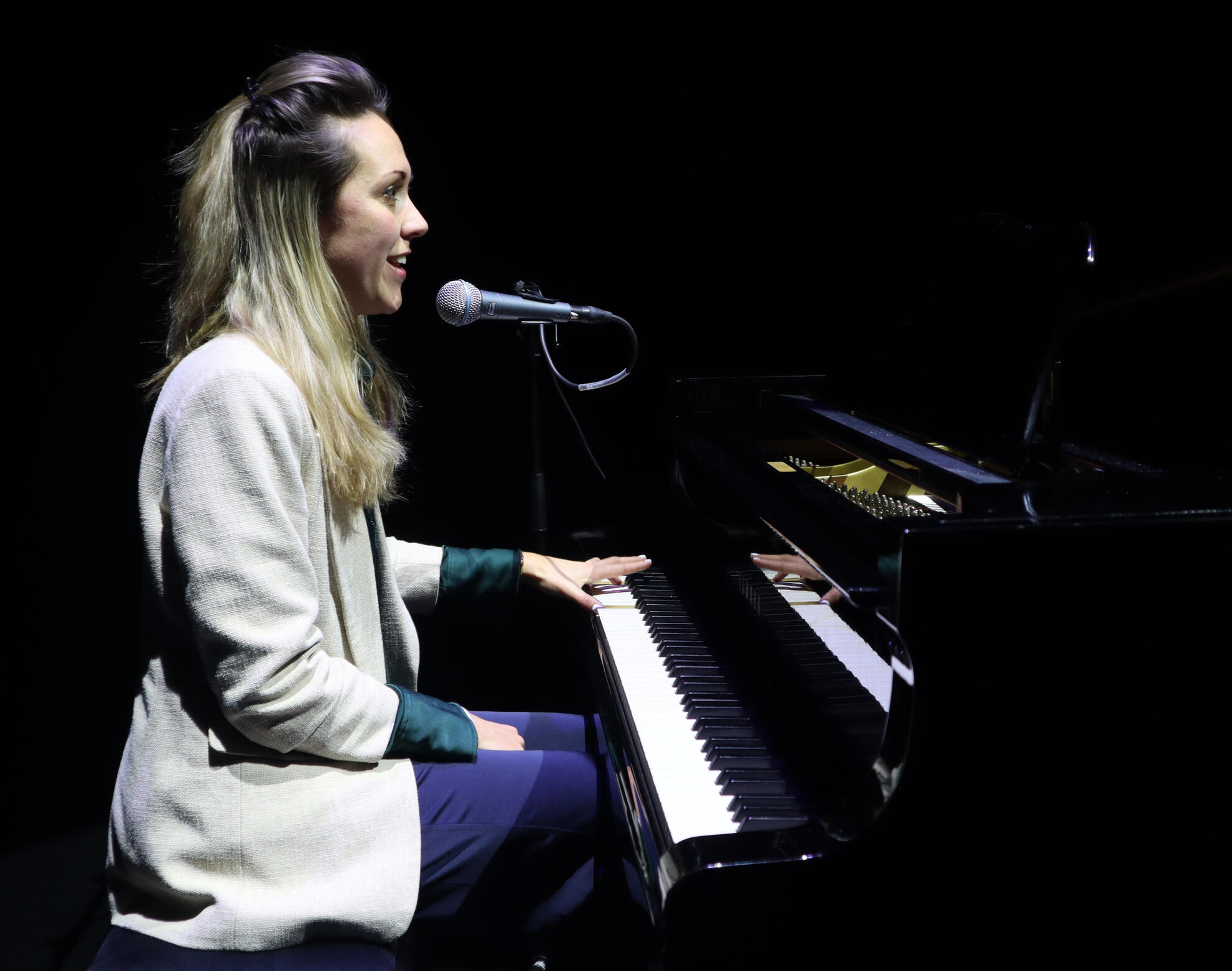 BESCHRIJVING VOORSTELLING:"Gedreven door haar idealen en gemengde roots ging Djûke Stammeshaus in 2017 aan de slag bij het Ministerie van Buitenlandse Zaken en de Europese Unie, eerst op het dossier migratie en later als afgevaardigde op Oekraïne, Rusland en Oost-Europa. Gaandeweg raakte ze verstrikt in de politieke leeuwenkuil van Brussel.Bepakt met een zwarte kokerrok, dagboek en ‘musicalknop’ als tegengif voor de bureaucratische rompslomp, geeft Djûke een inkijkje in de Brusselse black box. Want hoe behoud je je waarden en ambities in een wereld waar mensen een cijfertje worden, met deadlines en memo’s als prioriteit nummer 1? Met anekdotes, interactie, liedjes en een flinke dosis humor neemt ze het publiek mee langs haar werkervaringen van Brussel tot Kamp Moria.Hoeveel Kunnen We Aan is een zoektocht naar zingeving als radertje in een grote organisatie. Djûke duikt in de tegenstrijdige gedachten en emoties over migratie: van compassie tot afwijzing en alles daartussenin. Deze muzikale solovoorstelling toont de rauwe randjes van de actualiteit, en hoe elk mens vol gelaagdheid zit."